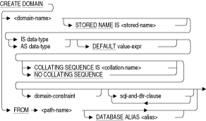FROM path-name句で、特定のデータベースへのアタッチの名前を指定します。SQLは、この別名で参照されるデータベースにドメイン定義を追加します。別名を指定しない場合、SQLではデフォルト・データベースにドメイン定義を追加します。デフォルト・データベースおよび別名の詳細は、第2.2.1項を参照してください。