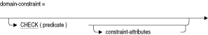CHECK句を使用して、値が規定の範囲内である必要があること、または値が値リストと一致するように指定します。ドメイン制約にCHECK句を指定する場合、ドメインに基づいて列に格納されているすべての値が一貫してチェックされていることを確認します。