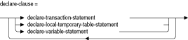 モジュールに対してトランザクションを宣言します。declare-transaction-statementは、各モジュールに1つのみ許可されます。省略すると、DECLARE TRANSACTION READ WRITEが暗黙的に使用されます。詳細は、「DECLARE TRANSACTION文」を参照してください。declare-variable-statement