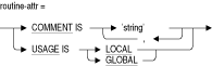 - USAGE IS LOCALは、ルーチンの参照がモジュール内に限定されていることを示します。この句はCREATE MODULEには使用できますが、CREATE FUNCTIONまたはCREATE PROCEDUREには使用できません。