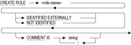 - role-nameには任意の有効なSQL名を指定できます。IDENTIFIED EXTERNALLYが使用されている場合、名前はOpenVMSのネーミング規則に準拠する必要があります。つまり、大文字、数字、アンダースコアおよび$を使用し、記号として空白は使用できません。