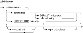 表内に作成する列の名前です。列の定義に直接データ型を指定するか、または列の定義にドメイン名を指定して間接的にデータ型を指定するかに関係なく、列名を指定する必要があります。COMPUTED BY value-expr