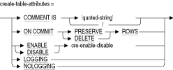 LOGGING句は、CREATE TABLE文がリカバリ・ユニット・ジャーナル・ファイル(.ruj)とアフター・イメージ・ジャーナル・ファイル(.aij)に記録されることを指定します。NOLOGGING句は、CREATE TABLE文がリカバリ・ユニット・ジャーナル・ファイル(.ruj)とアフター・イメージ・ジャーナル・ファイル(.aij)に記録されないことを指定します。