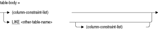 データベース管理者は、既存表用にメタデータをコピーし、類似する特性で新規の表を作成できます。オプションの列リストを使用すると、この表に列および制約を追加できます。被参照表は作成する表と同じデータベース内にある必要があります。LOGGING