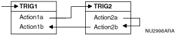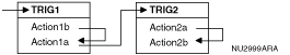 - 複数のアクションを実行するトリガーが起動され、これらのアクションのいずれかによって別のトリガーが起動される場合、2番目のトリガーで実行されるアクションは、最初のトリガーの後続アクションの実行前に完了する必要があります。次に例を示します。