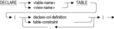 プログラムで明示的に表定義またはビュー定義を宣言します。DECLARE TABLE文で名前を付けた表では、明示的な宣言と定義を比較するためのスキーマのチェックは実行されません。明示的な表宣言は次のような場合に便利です。