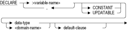 対話型SQLおよび動的SQLでのストアド・プロシージャの起動、およびモジュールまたは埋込みSQLプログラムでのプロシージャのテストに使用できる変数を宣言します。複合文での変数宣言の詳細は、「複合文」を参照してください。