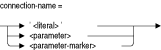 アタッチされるデータベースのグループ(環境)とそれらを参照するデータベースおよび問合せ(セッション)間の関連に対する名前を指定します。接続名は次のように指定できます。