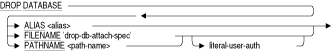アタッチされたデータベースの別名を指定します。DROP DATABASE文は、データベース、および別名に関連付けられたすべてのデータベース・ルート・ファイルと記憶域ファイルを削除します。データベースがPATHNAME引数で宣言されている場合、ROP DATABASE文でも、データベース定義が含まれるリポジトリ・ディレクトリが削除されます。
