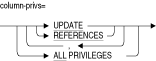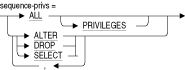 既存のACLエントリに追加する、または新しいACLエントリに作成する権限リストを指定します。特定の権限キーワードで許可される操作は、その権限がデータベース、表、列、モジュール、外部ルーチンまたはシーケンスのいずれに付与されているかで異なります。表6-9に、データベース、表、列、モジュール、外部ルーチンおよびシーケンスに対する権限キーワードおよびその意味を示します。