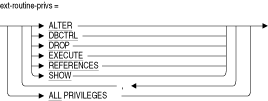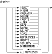- OpenVMS SYSPRV権限のあるユーザーは、暗黙的にDBADMデータベース権限のあるユーザーと同じ権限を受領します。