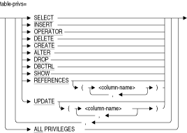 OpenVMS OPER権限のあるユーザーは、暗黙的にSELECTデータベース権限、INSERTデータベース権限、UPDATEデータベース権限およびDELETEデータベース権限を受領します。