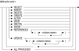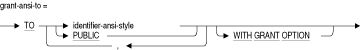 - GRANT(ANSI/ISOスタイル)文を使用すると、既存のアクセス権限セットのエントリを変更するか、新規エントリを作成できます。