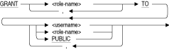以前にCREATE ROLE文で作成されたロールの名前です。オペレーティング・システムのグループまたは権利の識別子としてロール名が存在する場合、GRANT文が発行されると、Oracle Rdbではロールが自動的に作成されます。自動的に作成されるロールは、常にIDENTIFIED EXTERNALLYの属性を持ちます。TO username