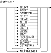 指定された型のすべてのオブジェクトのACLにREVOKE文を適用するかどうかを指定します。一部のオブジェクトで操作の権限が拒否された場合、REVOKEは中断されます。ただし、オブジェクトによっては保護の変更が適用されます。db-privs-ansi