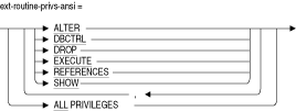 既存のACLエントリから削除する権限のリストを指定します。特定の権限キーワードで許可される操作は、その権限がデータベース、表、列、モジュール、外部ルーチン、または順序のいずれに付与されているかで異なります。「GRANT文」の表6-9には、データベース、表、モジュール、列、外部ルーチンおよび順序の権限キーワードとその意味が示されています。列レベルで明確に付与されている列レベルの権限のみを取り消すことができます。