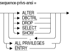 SQL> CREATE SEQUENCE EMPID; SQL> SHOW PROTECTION ON SEQUENCE EMPID Protection on Sequence EMPID (IDENTIFIER=[RDB,STUART],ACCESS=SELECT+SHOW+ALTER+DROP+DBCTRL) (IDENTIFIER=[*,*],ACCESS=NONE) SQL> GRANT SELECT ON SEQUENCE EMPID TO PUBLIC; SQL> SHOW PROTECTION ON SEQUENCE EMPID; Protection on Sequence EMPID (IDENTIFIER=[RDB,STUART],ACCESS=SELECT+SHOW+ALTER+DROP+DBCTRL) (IDENTIFIER=[*,*],ACCESS=SELECT) SQL> REVOKE DROP ON SEQUENCE EMPID FROM STUART; SQL> SHOW PROTECTION ON SEQUENCE EMPID; Protection on Sequence EMPID (IDENTIFIER=[RDB,STUART],ACCESS=SELECT+SHOW+ALTER+DBCTRL) (IDENTIFIER=[*,*],ACCESS=SELECT)