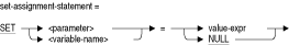 値式の値またはNULL値をターゲットのパラメータまたは変数名に代入します。