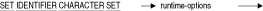 - SET IDENTIFIER CHARACTER SET文により、セッションの識別子キャラクタ・セットを設定します。