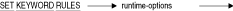 - SET KEYWORD RULES文がSET QUOTING RULES文の後に処理される場合、これにより、SET QUOTING RULES文によって設定された引用ルールがオーバーライドされます。