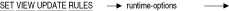 - SET DIALECT文がSET VIEW UPDATE RULES文の後に処理される場合、これにより、SET VIEW UPDATE RULES文の設定がオーバーライドされる可能性があります。