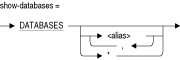 指定したデータベースに関する情報を表示します。データベースごとに、別名、データベースの型、定義された照合順番、およびデータベース・ファイルのファイル仕様が表示されます。データベースがリポジトリのパス名を使用して宣言されている場合、パス名も表示されます。SHOW DATABASES文で別名を指定しない場合、宣言されているすべてのデータベースに関してこの情報が表示されます。