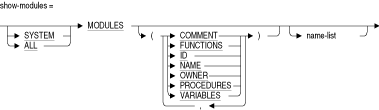 指定したモジュールに関する情報を表示します。次の表にリストされているSHOW MODULESオプションを指定しない場合、これらすべてのオプションに関する情報が表示されます。
