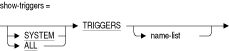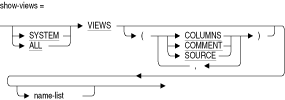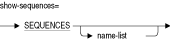 ほとんどのSHOW文では、オブジェクト名を指定できるオプションのname-listか、このようなすべてのオブジェクトのサマリーを示すワイルドカード(*)が受け入れられます。このワイルドカードまたは名前の先頭には別名を付けることができます。また、マルチスキーマ・データベースの場合は、カタログおよびスキーマを先頭に付けることができます。デフォルトでは、名前は大文字です。オブジェクトが大文字と小文字の組合せまたは小文字のみで定義されているか、他の特殊文字を使用して定義されている場合、SET DIALECT文またはSET QUOTING RULES文を使用してデリミタ付き識別子を有効にします。次に、SHOW文で名前を引用符("")で囲みます。