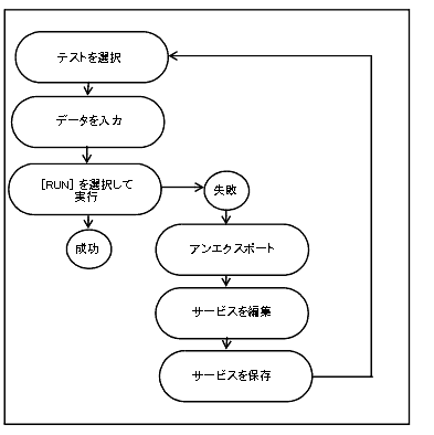次の図に、リポジトリ・エディタによるサービスのテストの典型的な流れを示します。