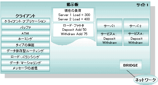 ロードとは、サービスの実行に必要な時間に基づいて、サービス要求に割り当てられた数値のことです。ロードはサービスに割り当てられるので、BEA Tuxedo システムで要求間の関係を識別できるようになります。コンフィギュレーション内の各サーバによって実行されている処理量、つまり負荷の合計をトラッキングするために、管理者はすべてのサービスとサービス要求にロード・ファクタを割り当てます。ロード・ファクタとは、あるサービスまたは要求を実行するために必要な時間を示す数値です。これらの数値に基づいて、各サーバに対して統計が生成され、各マシンの掲示板で維持されます。各掲示板では、各サーバの負荷が累積されます。そのため、すべてのサーバがビジー状態になった場合に、最も負荷の低いサーバを選択できます。