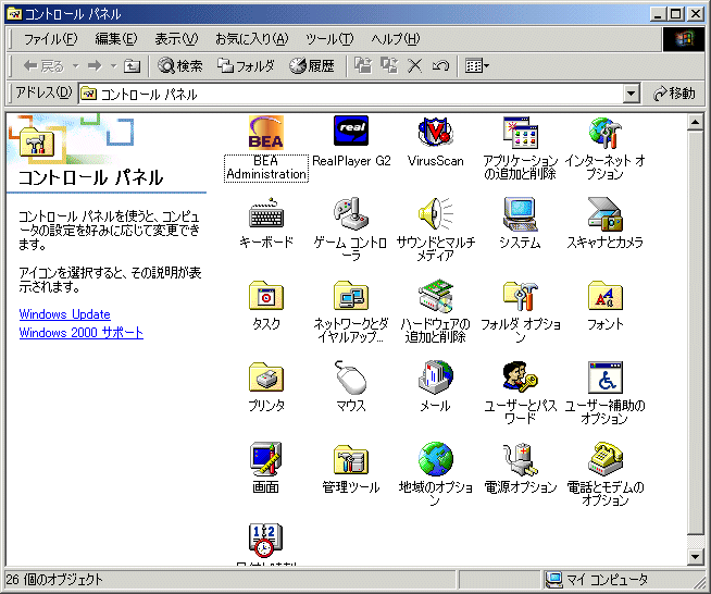BEA Tuxedo ATMI for Windows 2000 には、BEA Administration Console のほか、BEA Tuxedo ATMI for Windows 2000 をコンフィギュレーションするためのコントロール・パネルが用意されています。コントロール・パネルで実行できるタスクは、以下のとおりです。