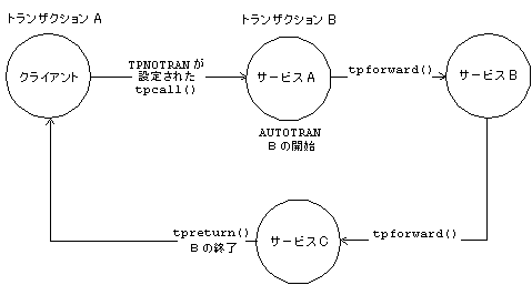 AUTOTRAN が設定された TPFORWAR と TPRETURN のトランザクションでの役割