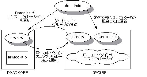 注記 ゲートウェイ・プロセス GWTOPEND(5) は、リモート・ゲートウェイ・プロセスへの接続を実現します。クライアントおよびサーバは、GWTOPEND プロセスを介して BEA Tuxedo と BEA TOP END システムの間でメッセージを送受信します。このプロセスは Domains の管理操作には含まれません。