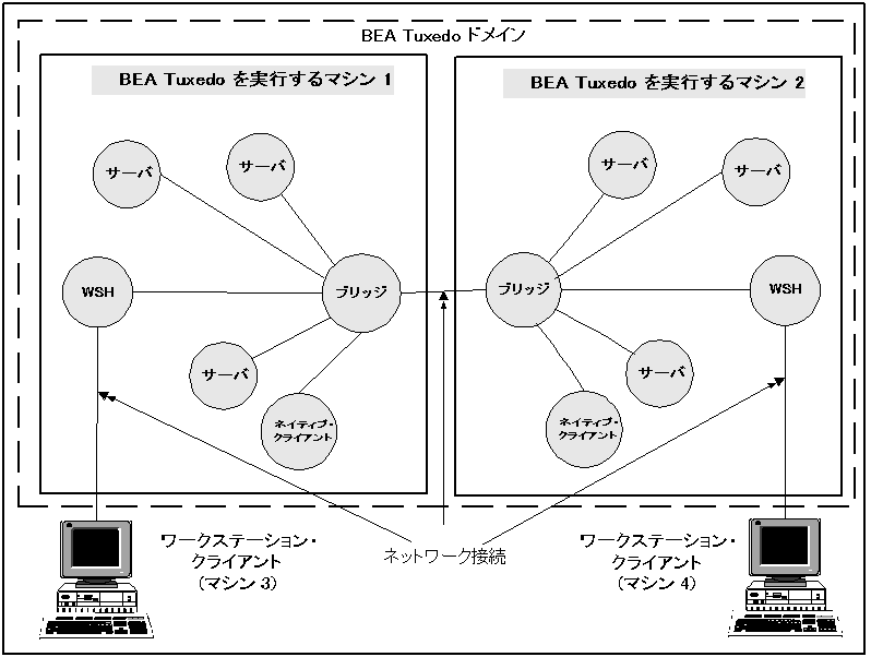 図 6-2 は、BEA Tuxedo のアーキテクチャの基本である BEA Tuxedo ドメインを示しています。