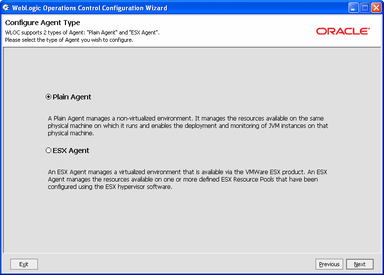 この例では、Plain Agent とコントローラを同一のローカル Windows マシンにインストールおよび作成します。UNIX または Linux プラットフォームでの WLOC のインストールおよび Configuration Wizard の開始に関する手順については、以下を参照してください。