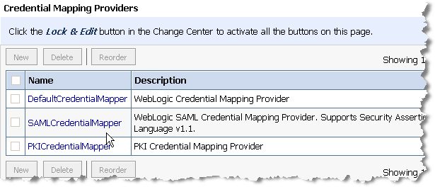 | Tip: | The SAML Credential Mapper provider acts as a producer of SAML security assertions, allowing WebLogic Server to act as a source site for using SAML for single sign-on. |