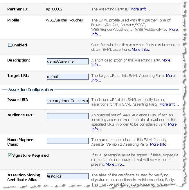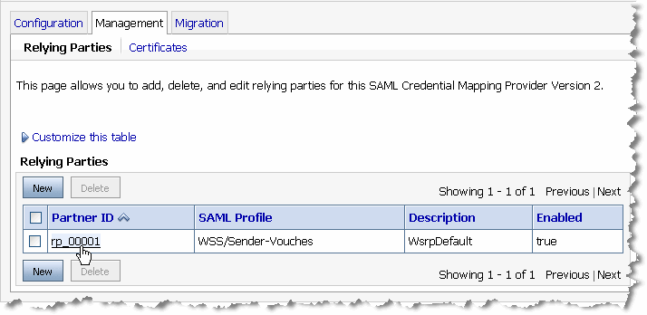 | Tip: | For more information on relying party configuration, see the WebLogic Server topic, “Configuring a Relying Party.” |