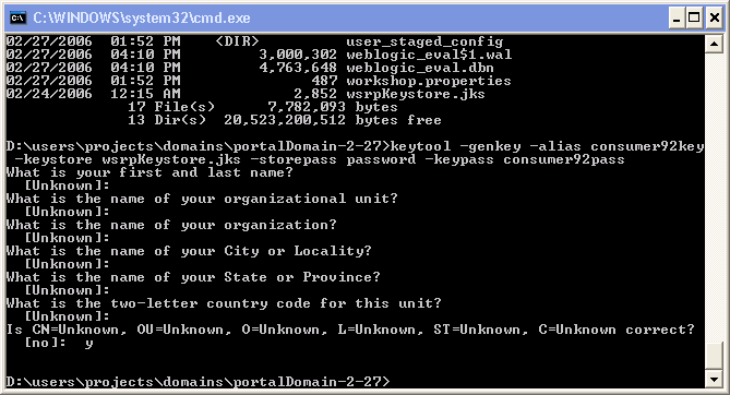 keytool -genkey -alias consumer92key -keystore wsrpKeystore.jks -storepass password -keypass consumer92pass