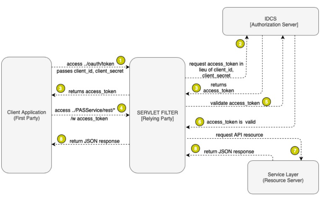 Machine-2-Machine Interaction, where client is an application authenticating against another application. This is the simplest flow, where client credentials (CLIENT_ID and CLIENT_SECRET) is exchanged in lieu of an access token. In this use case CLIENT (an application) accessing Service Layer API (Resource) from a Service Layer application (Resource Server) authenticating and authorizing against an Identity Provider (Authorization Server). In this scenario a resource owner (a User) is not involved.