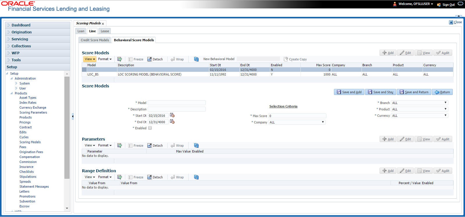 Under the Setup master tab’s drop-down link bar, the product Setup link opens screens that enable you to configure the basic business guidelines necessary to support one or more products in the system. This includes defining the types of collateral your company supports, creating lending instruments, and determining what is included in credit bureau reporting. Setting up the Products screens requires a thorough understanding of the current rules of your business and must be completed before you can use Oracle Financial Services Lending and Leasing. The Products drop-down link opens screens to record data of all the products supported by the system and contains the following links:
