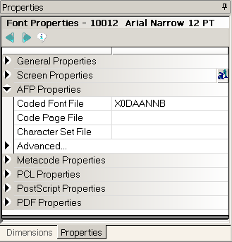 To use this coded font for printing with Documaker Server, enter the name of the coded font file (without the FNT extension) into the Coded Font File field under AFP Properties on the Font Properties tab in Studio’s Font manager.