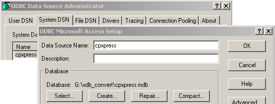 Here an example of the MS Data Sources (ODBC) setup from a conversion: