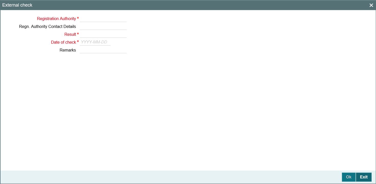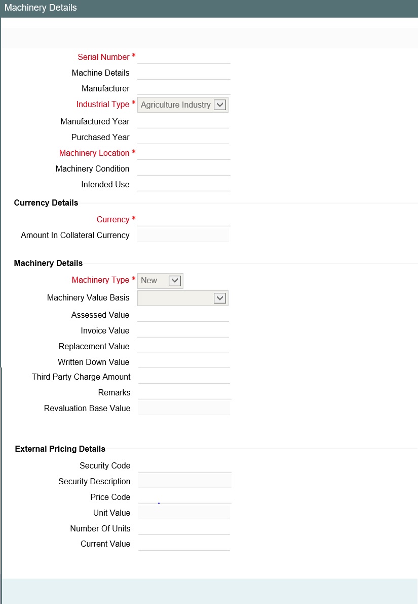 Following sub-screens are not relevant to ‘Account Receivable’ type of collateral. Appropriate message is displayed when the same are invoked for entering data at the time of collateral maintenance.