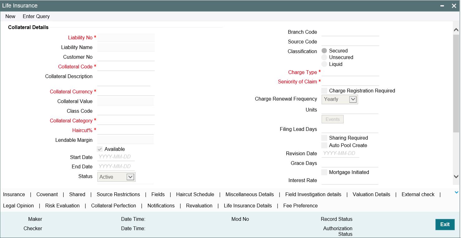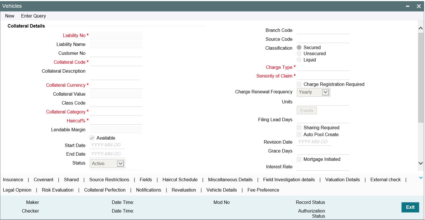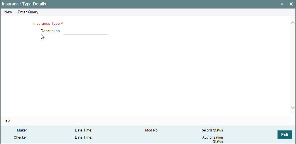 Collateral Types maintenance is used to capture all types of Collateral which your bank accepts. Collateral Types information would be required when creating a new collateral in the system.
