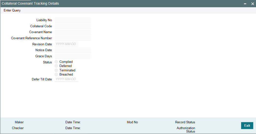 You can define the category to which collateral belongs to using the ‘Collateral Category Maintenance’ screen.