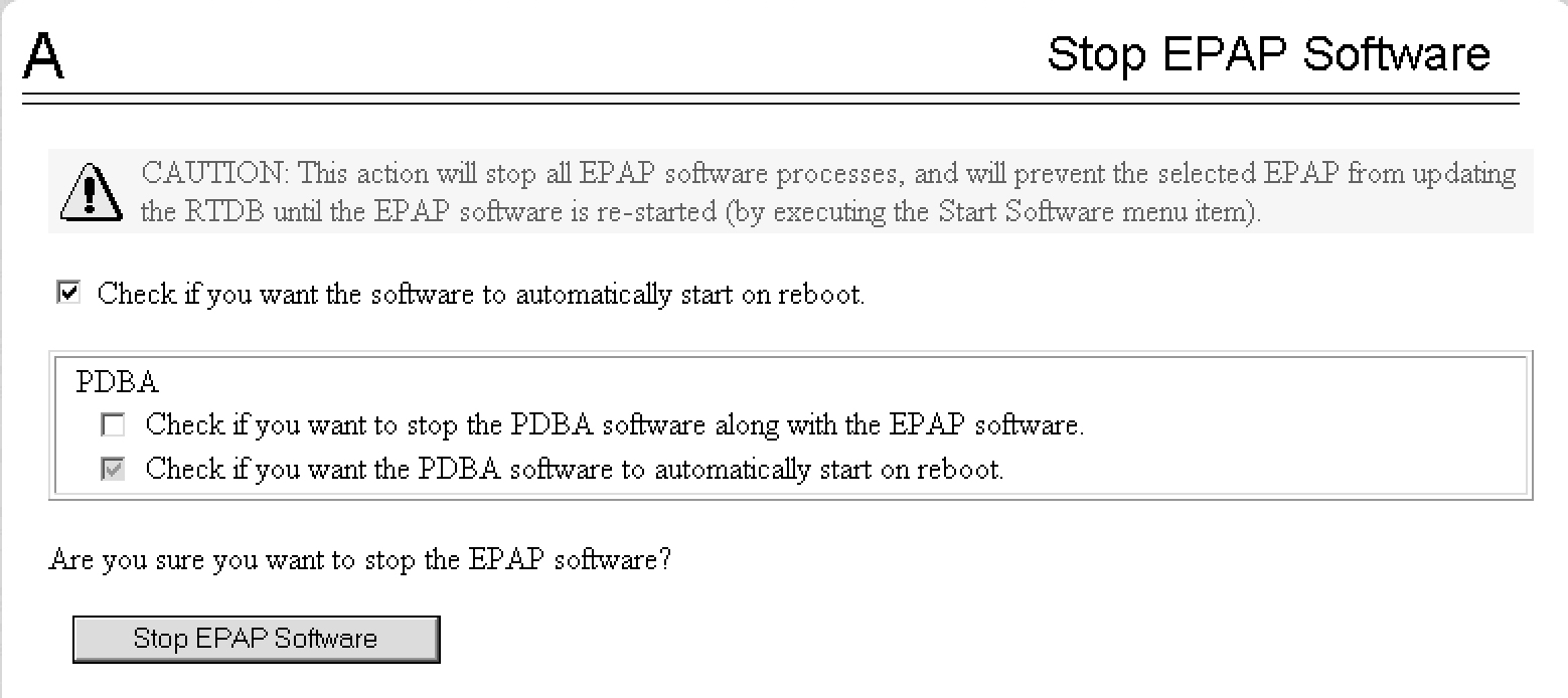 When you stopped the software on the selected EPAP, the screen in Figure 3-14 displays: