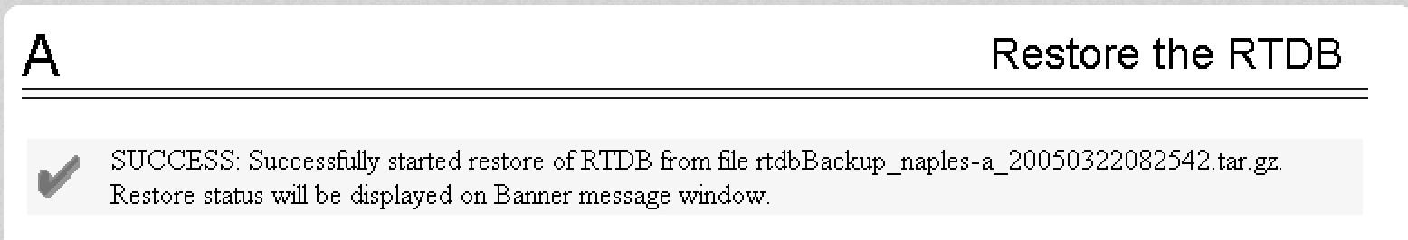To confirm restoring a file, click Confirm RTDB Restore shown in the screen for RTDB in Figure 3-16: