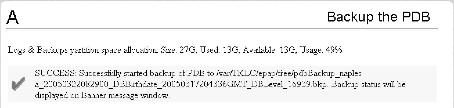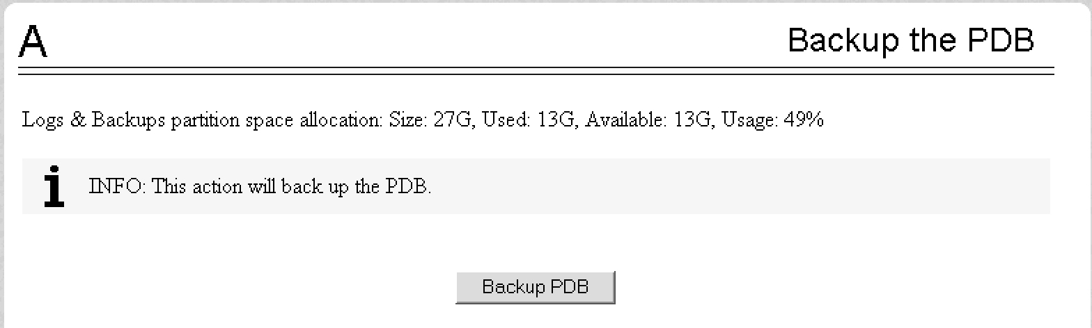 Make sure that you perform this procedure on the same server on which you performed Backing Up the RTDB. Make sure that you performed Backing Up the RTDB first so that the RTDB backup level will be lower than the associated PDB backup level.