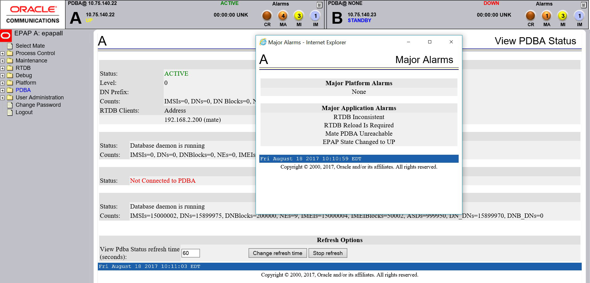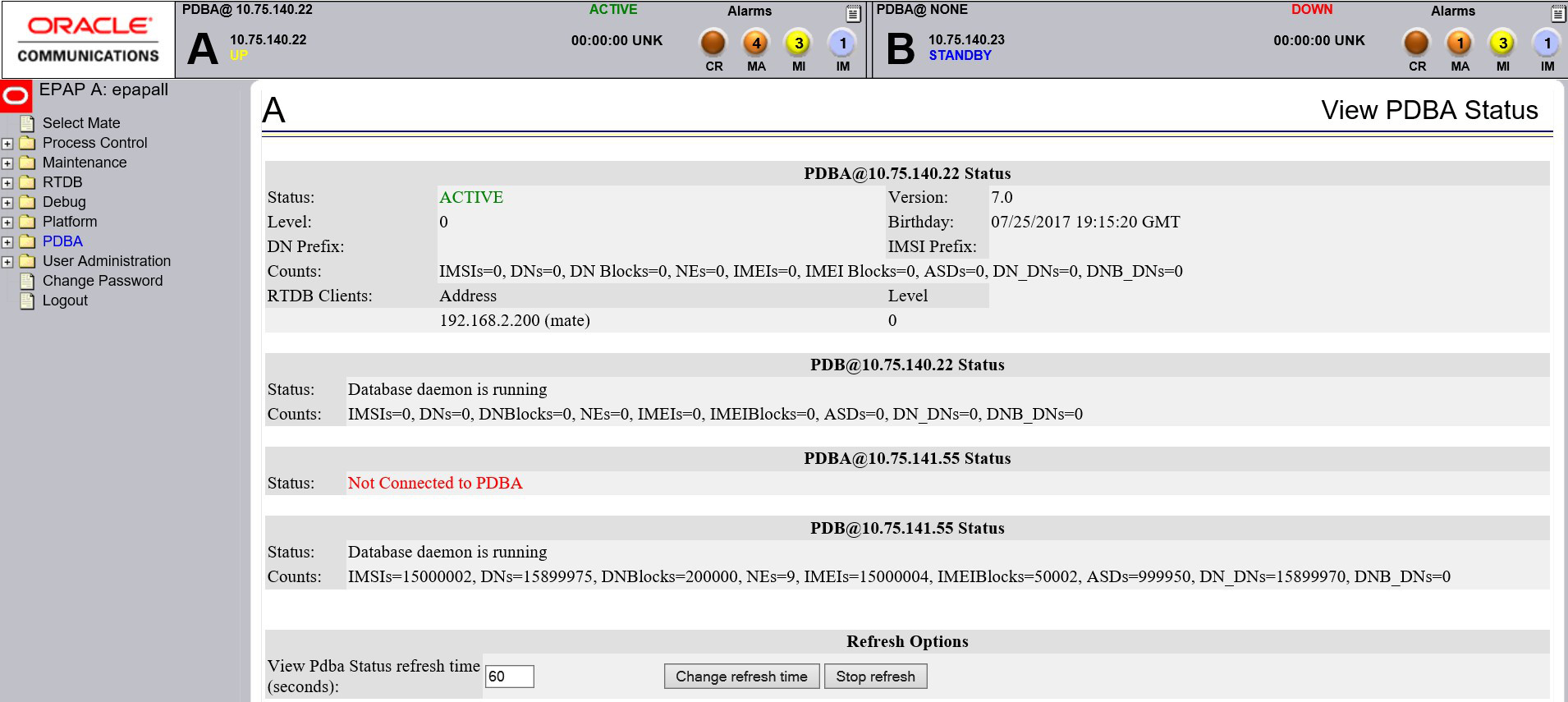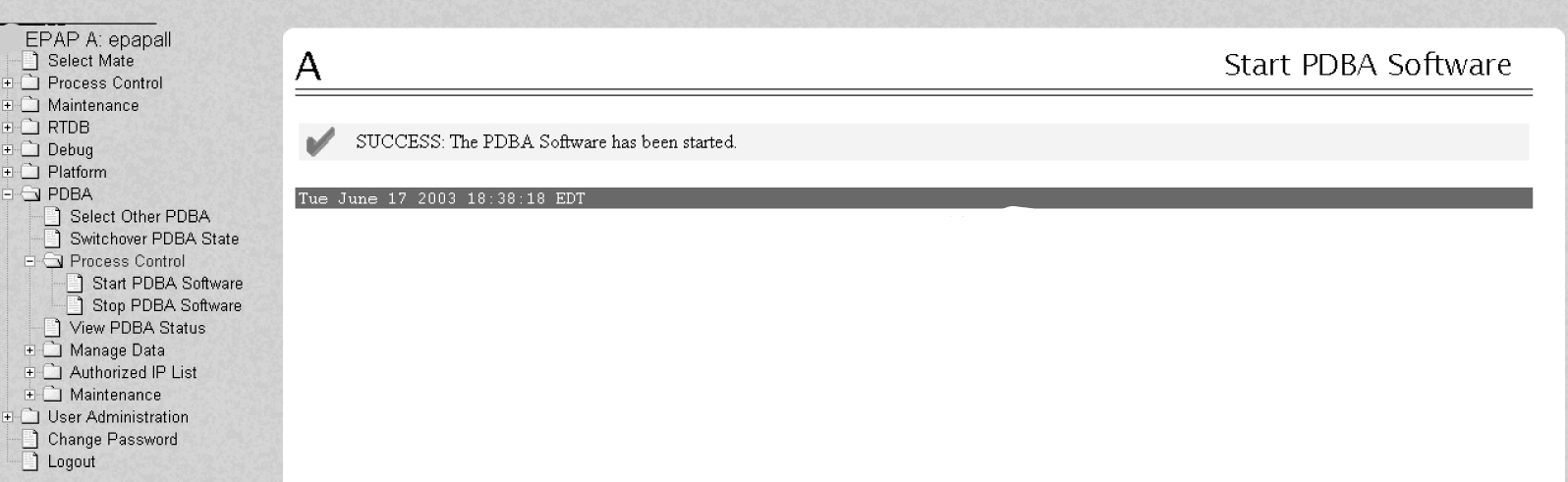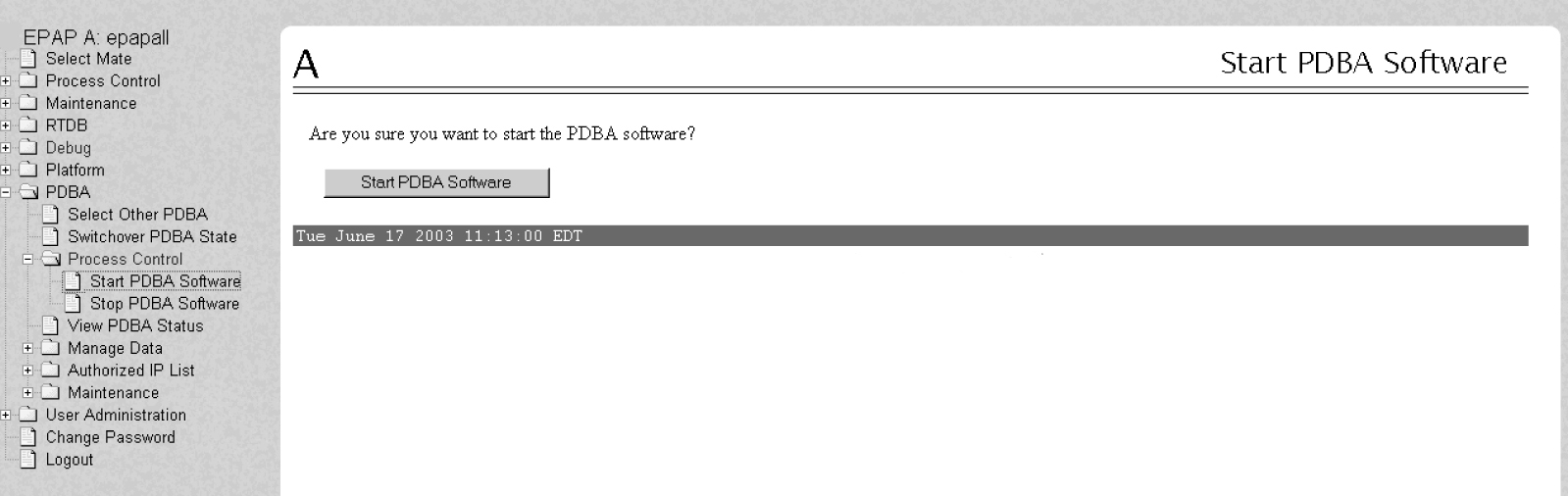 When the PDBA software has been started, the window shown in Figure 4-11 displays, and within moments the banner will show the PDBA status as ACTIVE or STANDBY.