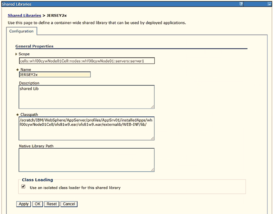 Figure 12: WebSphere Shared Libraries